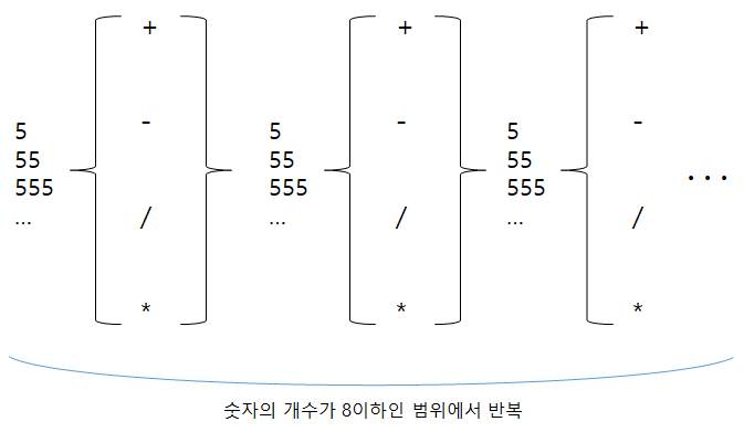 처음에는 문제를 읽고... 옳다구나! 그냥 앞에서부터 사칙연산을 골라서 모든 경우의 수를 다 계산하면되겠다!해서